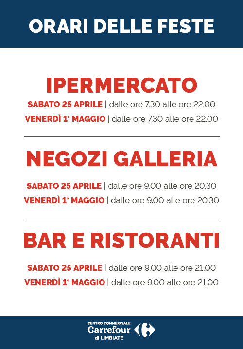 Consorzio degli Operatori del Centro Commerciale Carrefour di Limbiate | Ex SS 527 angolo Via Garibaldi - 20812 Limbiate (MB) - Tel. 0299692341 | P.IVA 05269230966 - C.C.I.A.A. 05269230966 - REA 1808309